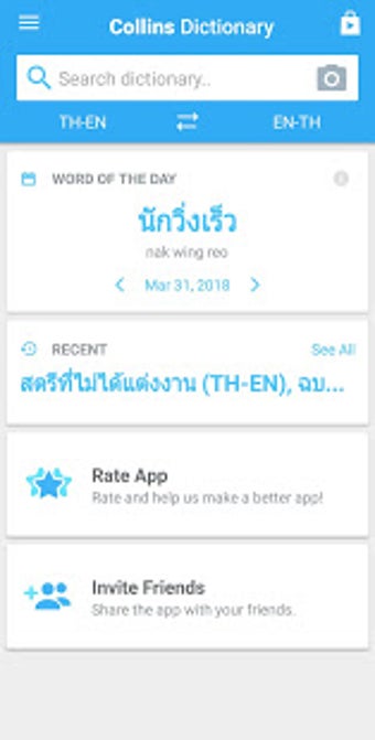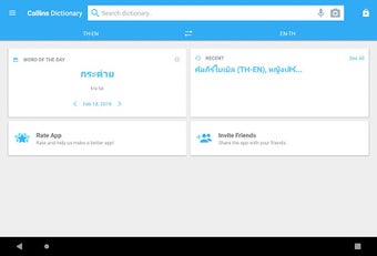 Collins ThaiEnglish Dictionary är tillgänglig för Android 9.0 eller senare. Den nuvarande versionen av programmet är 9.1.313 och du kan köra den endast på engelska.